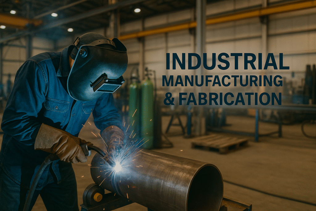 Layanan manufaktur dan fabrikasi industri, mencakup desain perpipaan, welding, inspeksi, dan pengujian mendukung berbagai industri.